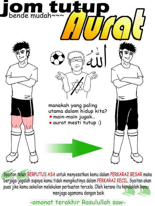 Related : Aurat Lelaki Dengan Lelaki : Aurat bagi lelaki ialah dari pusat hingga ke lutut, sementara bagi perempuan ialah seluruh badan kecuali muka dan dua tapak tangan..