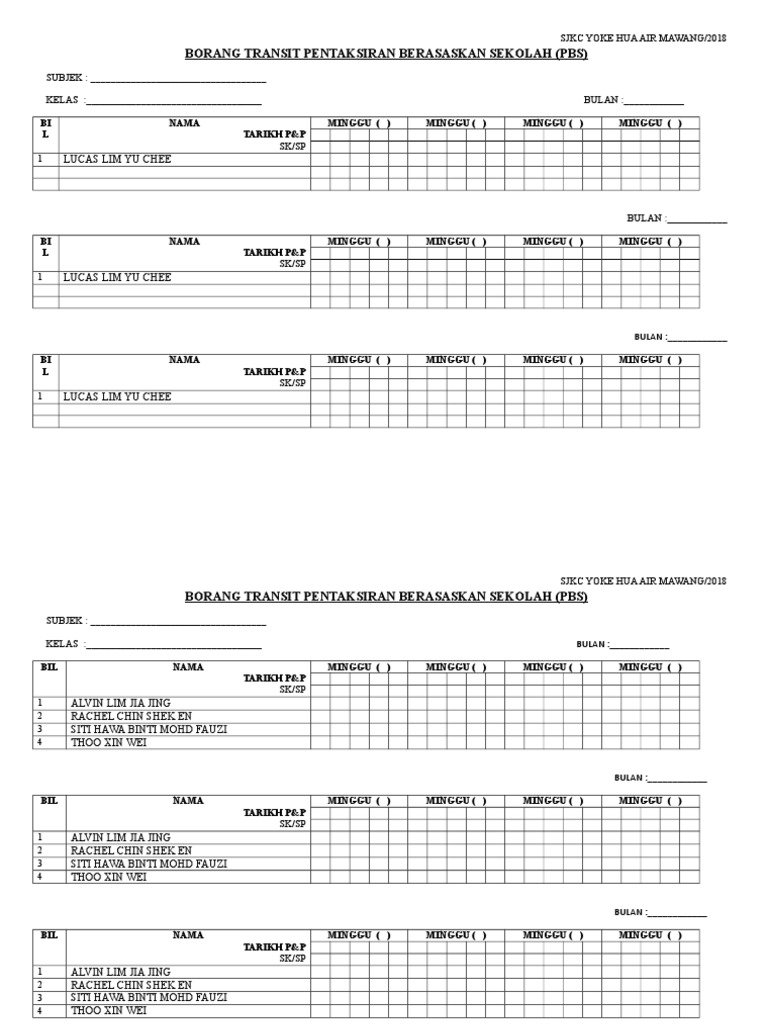 Borang Transit Pbs 2018 : Templat pelaporan pbd tahun 4 adalah sebahagian daripada komponen di pbd pentaksiran bilik darjah dilaksanakan.